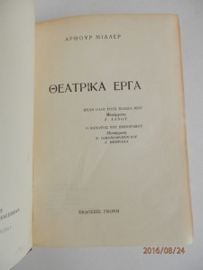 Εκδόσεις : » Γκόνη » 1963, ( δεμένο, περιλαμβάνει 2 θεατρικά έργα, : α) Ήταν όλοι τους παιδιά μου, β) Ο θάνατος του εμποράκου )Κατάσταση : Πολύ καλή ( ονοματεπώνυμο κατόχου )