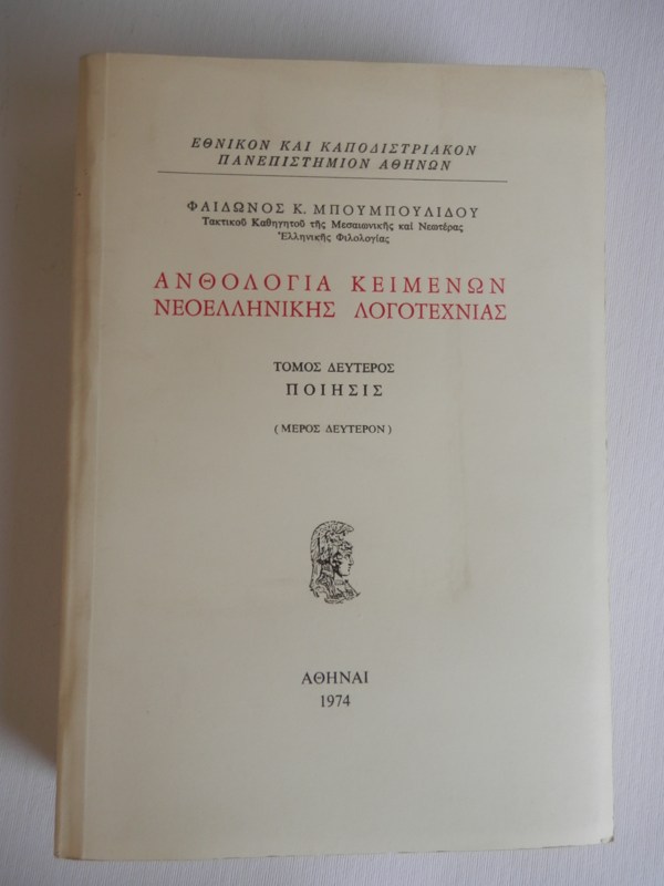 Εκδόσεις :»Εθνικόν και Καποδιστριακόν Πανεπιστήμιον Αθηνών»,1974,τόμος δεύτερος,Ποίησις(μέρος δεύτερον),σελ.412 διαστάσεων 22×15