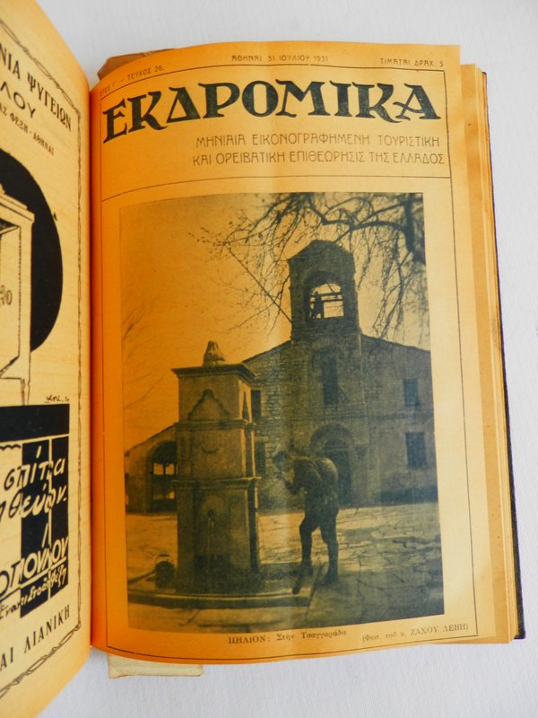 Εκδόσεις : Μηνιαία εικονογραφημένη τουριστική και ορειβατική επιθεώρησις της Ελλάδος 1931 έτος Β΄ τεύχη 12 από 20-31, τόμος 3ος (σελ.396 διαστάσεων 23,5×17)