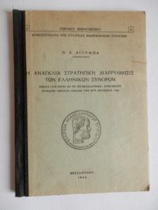 Εκδόσεις : «Εταιρεία Μακεδονικών Σπουδών»,1946,(σελ.15 διαστάσεων 22,5×16,5 + αναδιπλούμενο σχεδιάγραμμα