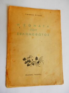 Εκδόσεις : «Κέδρος», 1956, πρώτη έκδοση, αφιέρωση του Ρίτσου στην πρώτη λευκή σελίδα στον Νίκο Καζαντζάκη