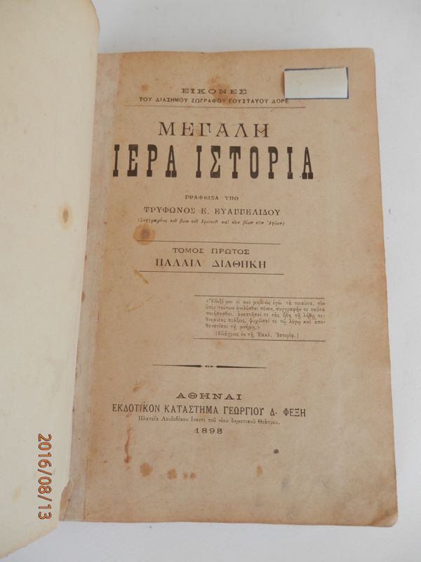 Εκδόσεις : » Φέξη » 1898, ( ο πρώτος τόμος, Παλαιά Διαθήκη, μεγάλου σχήματος 19 επί 27 )Κατάσταση : Καλή ( δεμένο, σφραγίδα κατόχου )