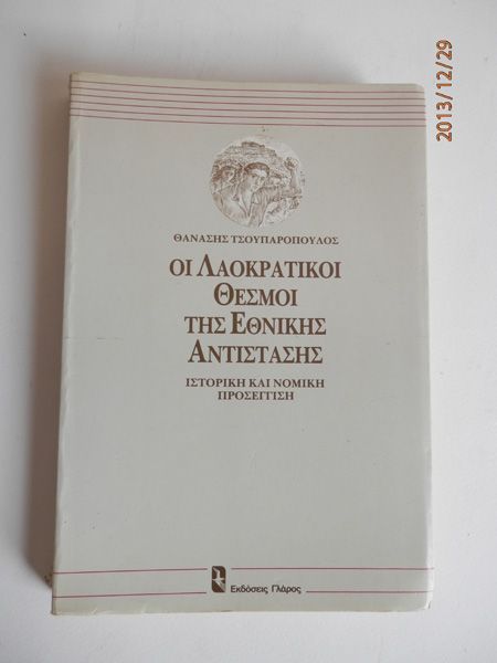 Τίτλος : Οι Λαοκρατικοί Θεσμοί της Εθνικής Αντίστασης Συγγραφέας : Θανάσης Τσουπαρόπουλος Εκδόσεις : Γλάρος 1989 Κατάσταση : Άριστη