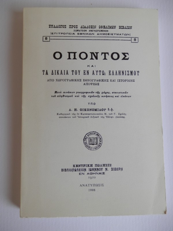 Εκδόσεις : 1920,ανατύπωσις 1998,(σελ.168+15 με φωτογραφίες+χάρτης του Πόντου)