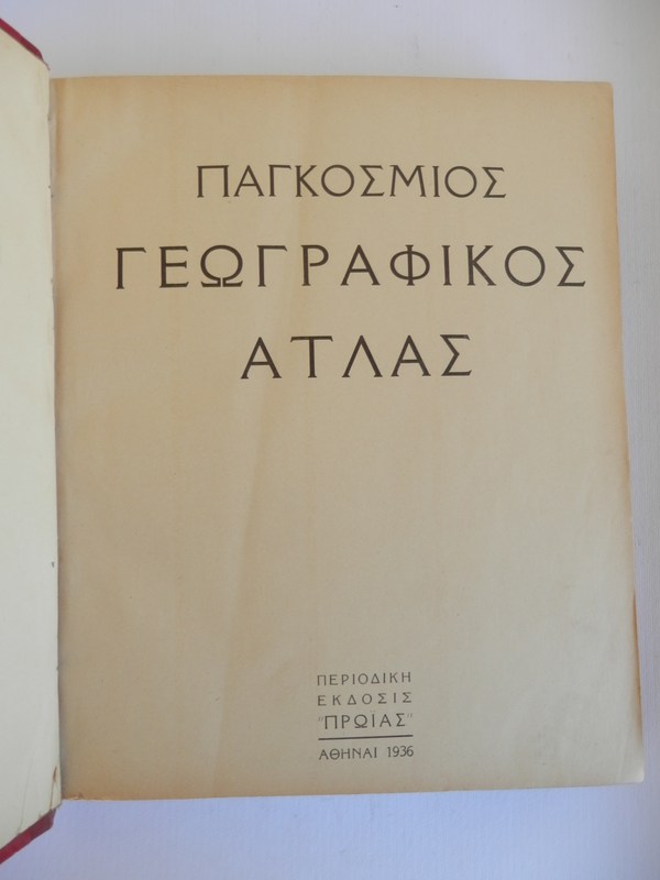 Εκδόσεις : «Πρωΐα», 1936, ιδιωτική βιβλιοδεσία, δύο μέρη, το δεύτερο ο Άτλας Ελλάδας, 136 αριθμημένοι χάρτες, (διαστάσεων 29×24)