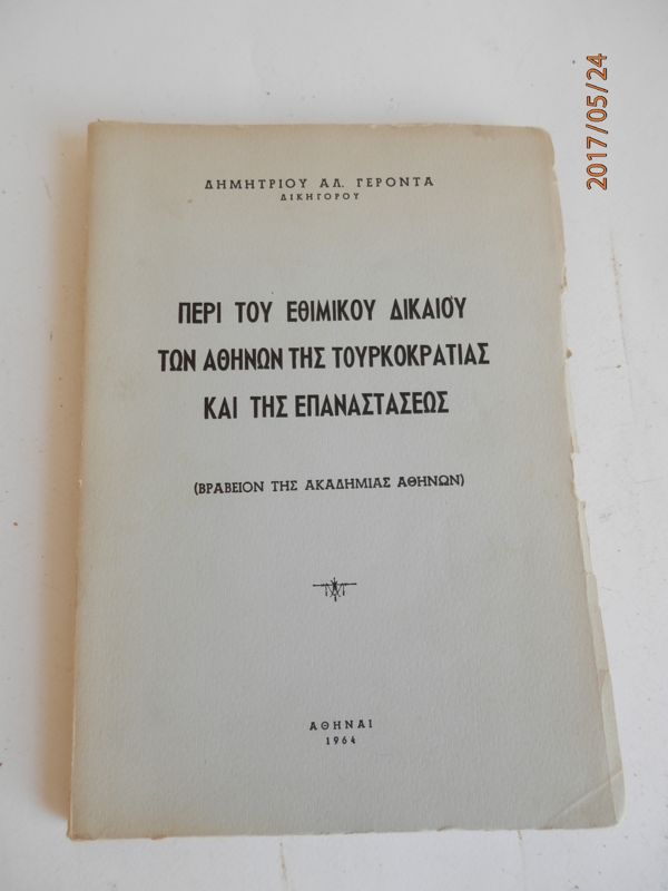 / Περί του Εθιμικού Δικαίου των Αθηνών της Τουρκοκρατίας και της Επαναστάσεως