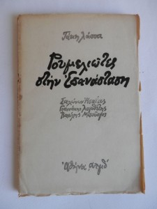 Εκδόσεις : » Σιδέρης » , 1944 , ( πρώτο βραβείο συνδέσμου Ελλήνων λογοτεχνών , σελ. 142 )