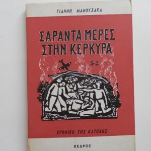 Τίτλος : Σαράντα μέρες στην Κέρκυρα Συγγραφέας : Γιάννης ΜανούσακαςΕκδόσεις : Κέδρος 1980Κατάσταση : Άριστη – σφραγίδα κατόχου