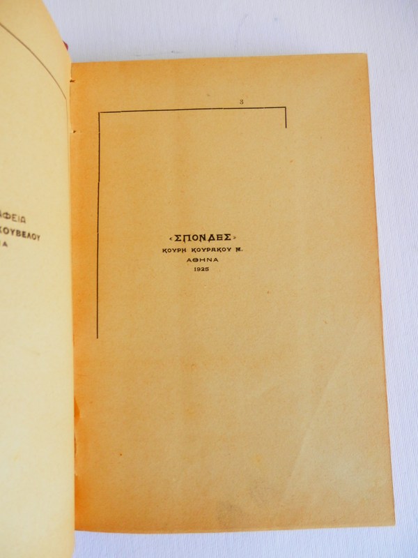 Εκδόσεις : 1925, (σελ.174 διαστάσεων 21×14), σκίτσο του ποιητή καμωμένο από τον Α.Πρωτοπάτση-PAZZI, σκιτσογράφο παρισινής «JOURNAL»