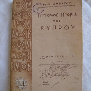Τίτλος : Σύντομος ιστορία της Κύπρου Συγγραφέας : Κων. Άμαντου Εκδόσεις : Σύλλογος προς διάδοσιν ωφέλιμων βιβλίων- 1956Τόμοι : 1 Κατάσταση : Άριστη (σφραγίδα κατόχου)
