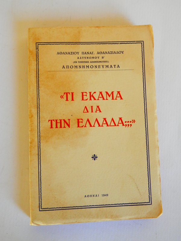 Συγγραφέας : Αθανάσιου Αθανασιάδου – απομνημονεύματα Αστυνόμου Β΄