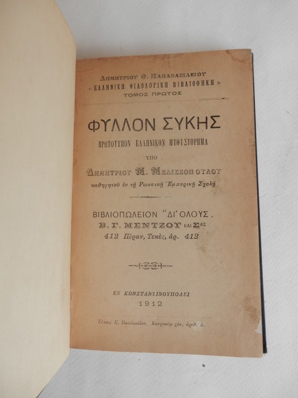Συγγραφέας :πρωτότυπον ελληνικόν μυθιστόρημα υπό Δημητρίου Μελισσοπούλου καθηγητού εντη Ρώσσικη Εμπορική Σχολή
